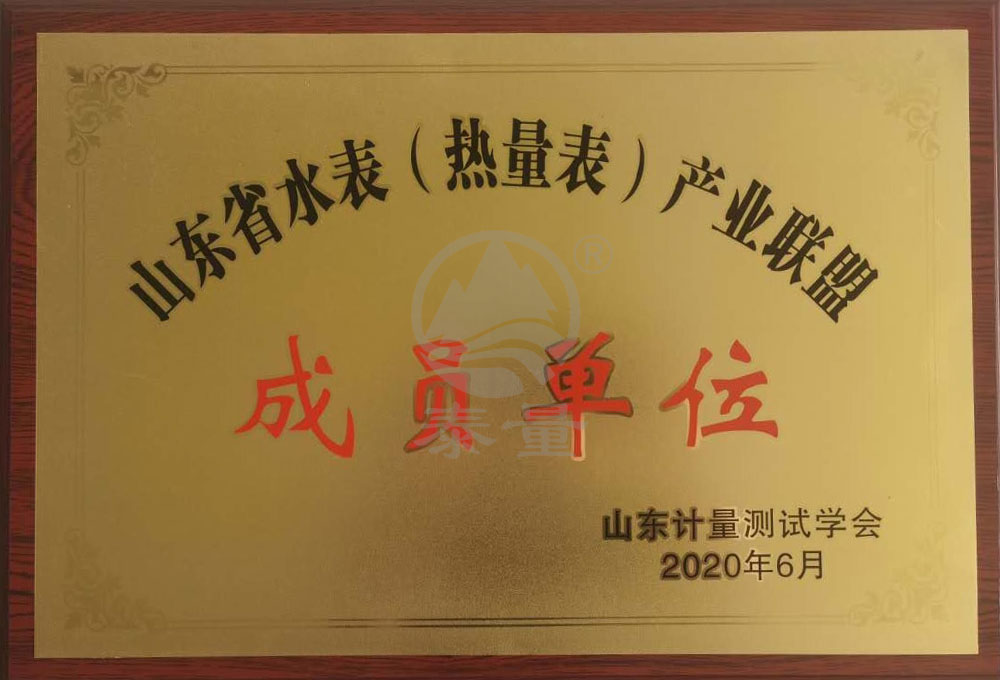 山東省水表產業聯盟證書
